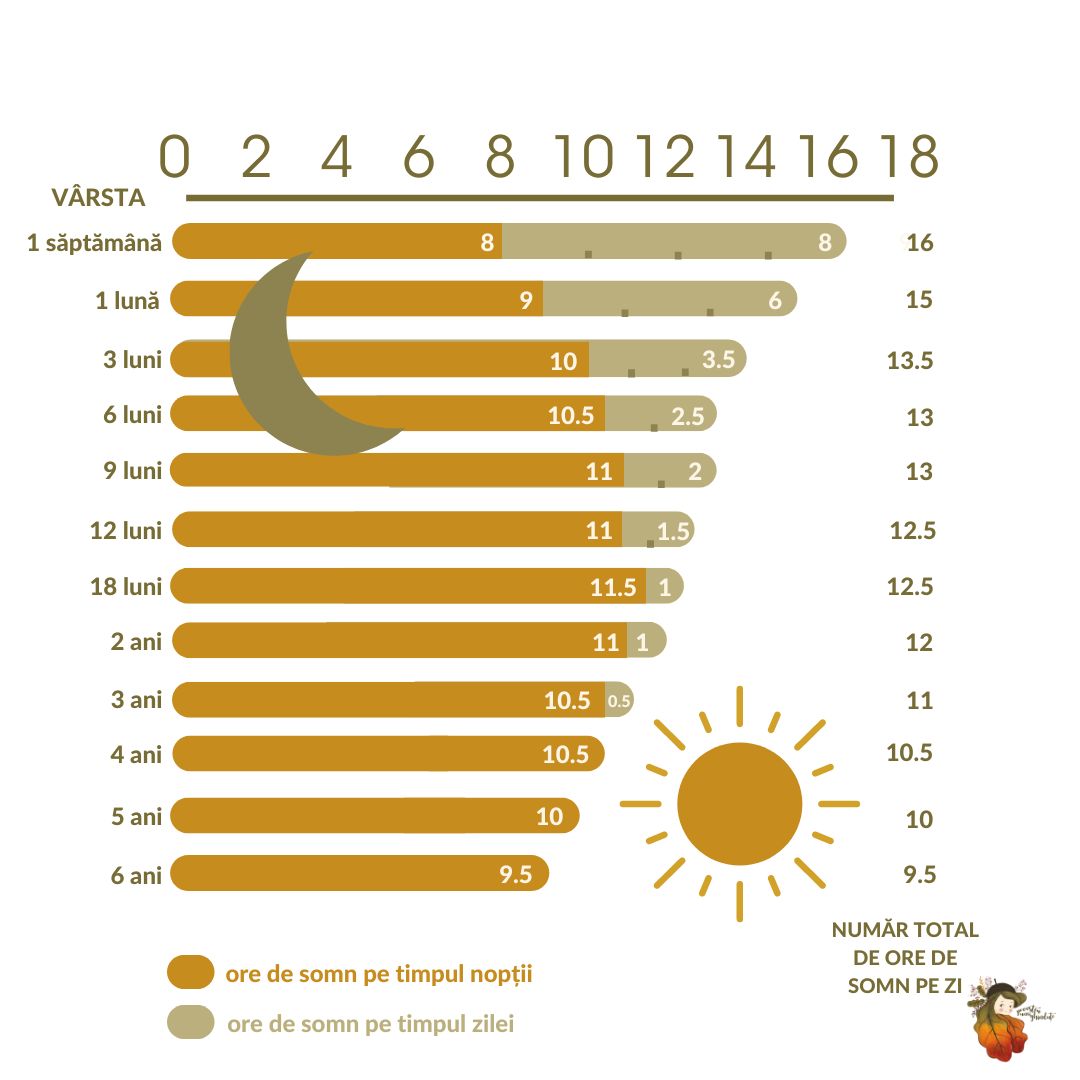 Aceste intervale se referă la somnul total pe zi, somn care include somnul de peste zi și cel de noapte. Experții NSF (National Sleep Foundation) menționează că aceste intervale pot fi modificate cu o oră în plus sau în minus în funcție de fiecare copil și preferințele sale. Este indicat să urmărim acest număr de ore în funcție de vârstă, însă trebuie să înțelegem că o durată sănătoasă a somnului poate varia mult între copii sau de la o zi la alta. Așa cum se poate vedea mai sus, nevoia de somn se modifică pe măsură ce copiii cresc.