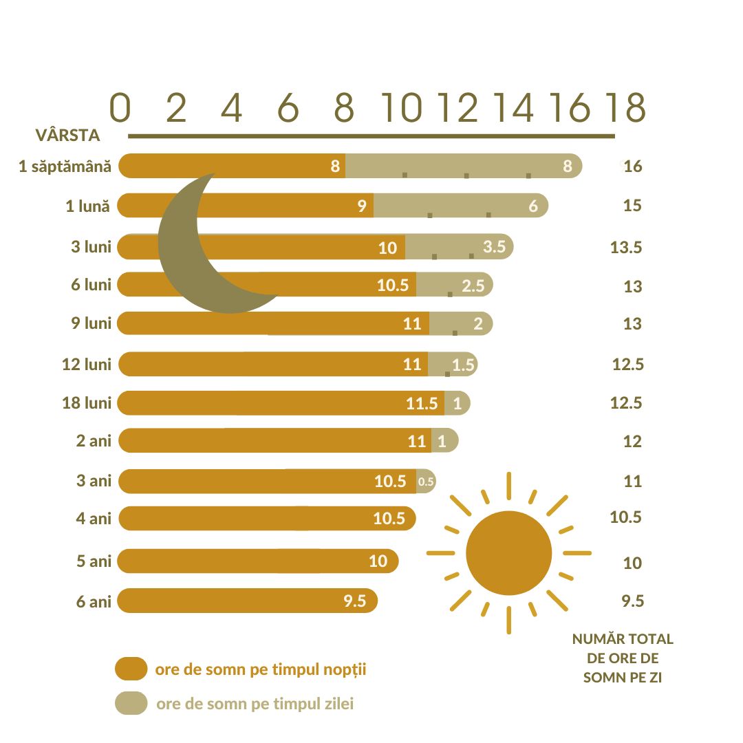 12-18 luni: mulți bebeluși trec la un model de somn nocturn continuu, fără atâtea treziri atât timp cât nu există un disconfort sau o condiționare.
